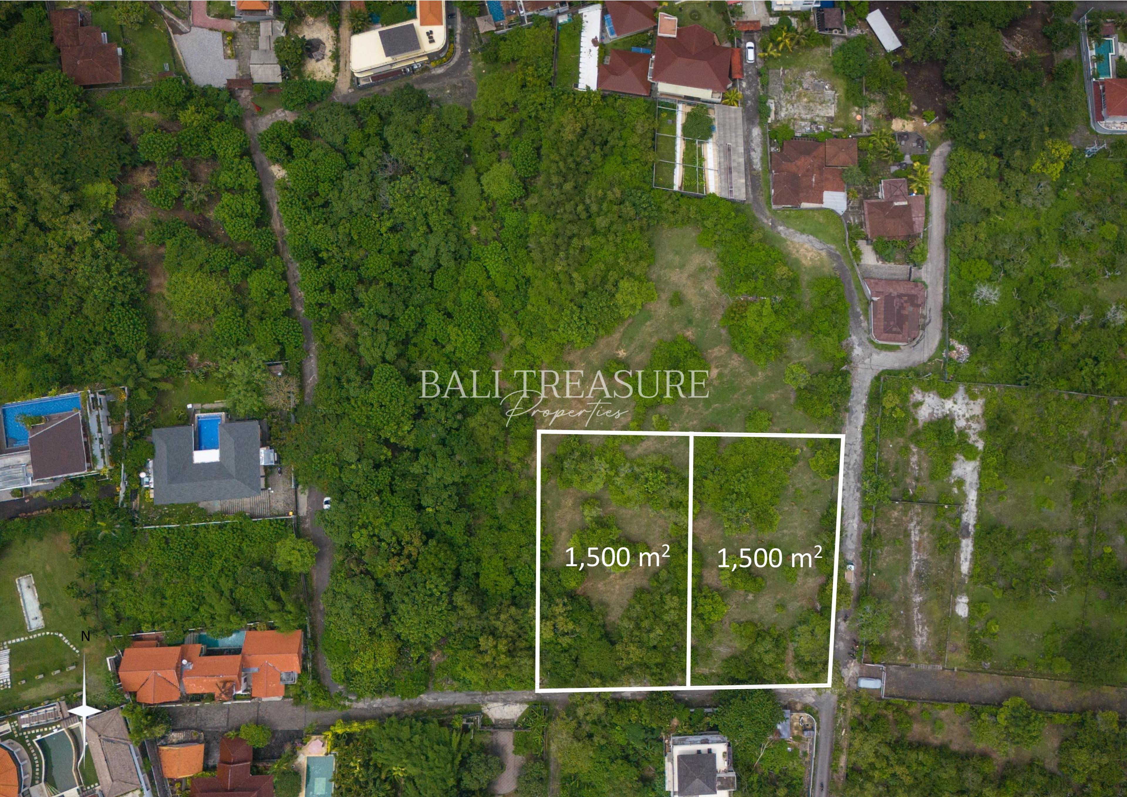 Amazing 1,500 sqm freehold land located in a very quiet area on Ungasan Hill. The land faces north and is situated at a higher elevation than the surrounding land. Offering a spectacular view of the Ocean and its coastal city from afar with all of Bali’s Mountains in the Background. All that, combined with dramatic lighting in the evening and nighttime from all the city lights, makes this a perfect site for the development of a Luxury Villa.