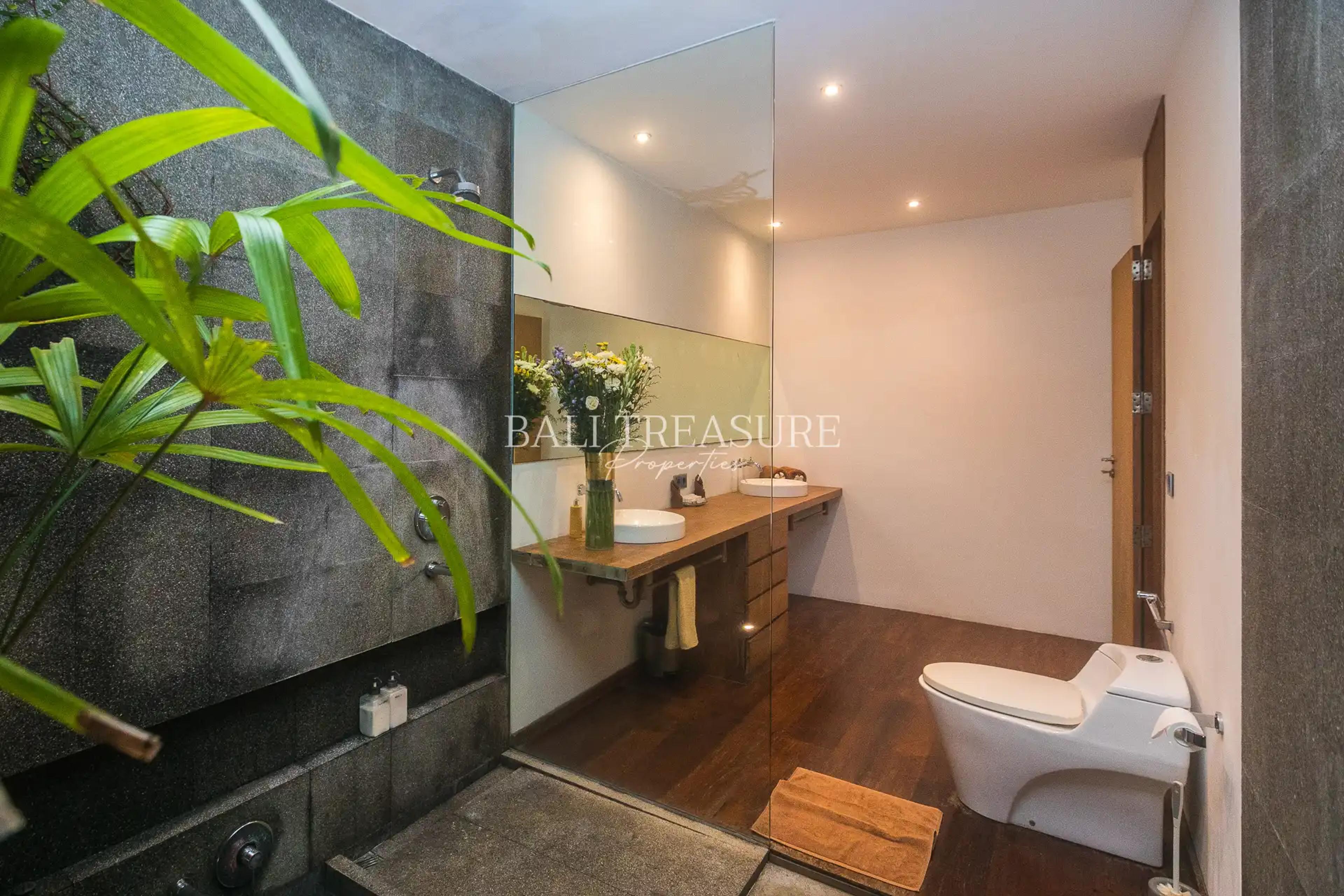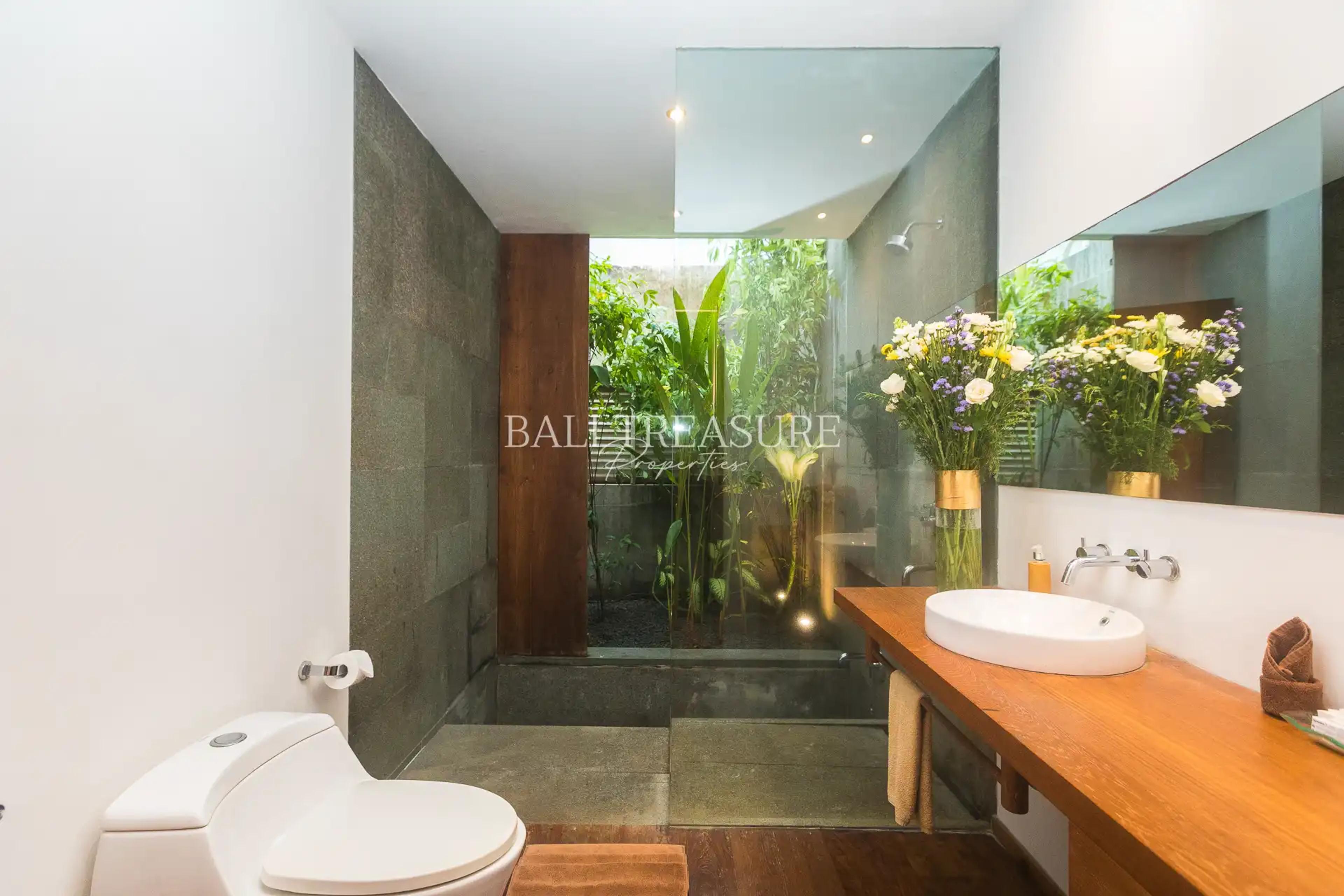 The pool area is surrounded by a well-maintained greenery landscape that gives off a fresh, relaxing vibe. Enjoy a breezy feel on Villa Brodie's rooftop, where a gazebo is placed for residents to experience the beautiful paradise scenery. This Villa was built in 2016 with a Pondok Wisata IMB.
