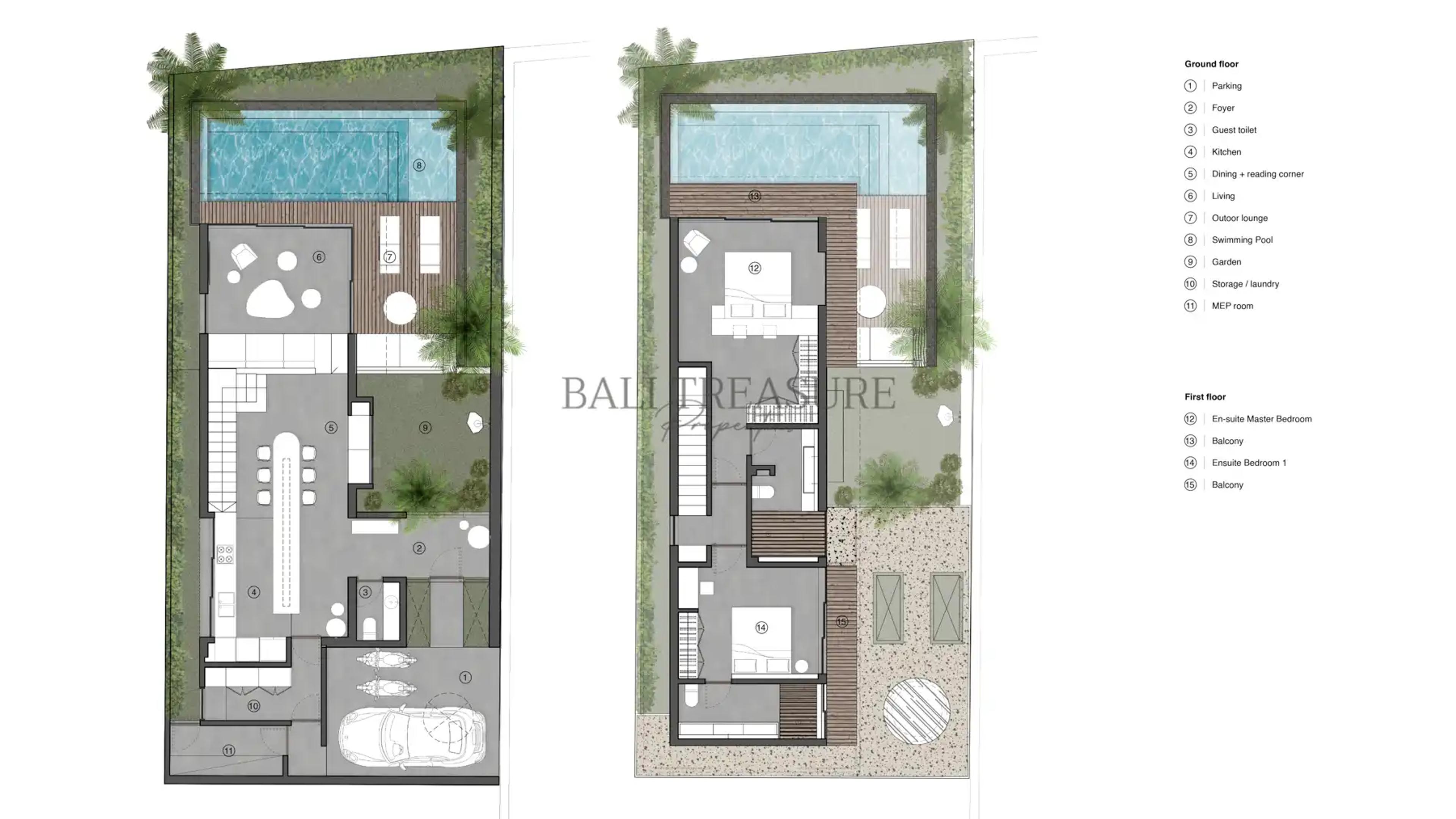 Designed to provide a luxurious living experience while incorporating elements of tropical design. The 2 bedrooms offer ample space for families, while the 2 bathrooms provide convenience for all residents. With a land size of 225 sqm, this villa offers plenty of outdoor space for relaxation and recreation. The building size of 192 sqm ensures that each villa is well-equipped to maximize comfort.