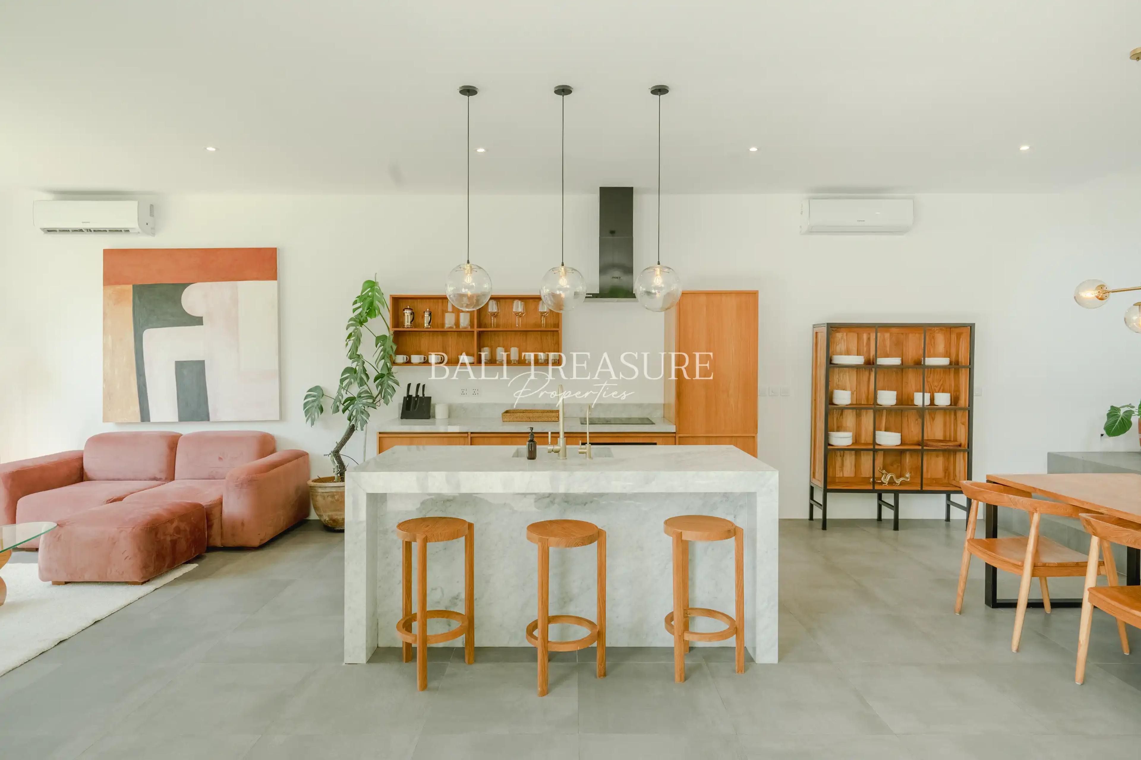 A FINE INVESTMENT, a complex of 3 fully-furnished luxury villas available for sale, located in the heart of Pererenan, just 500 meters from the beach and 100 meters from famous eatery such as Honey, Shelter, and BAKED.