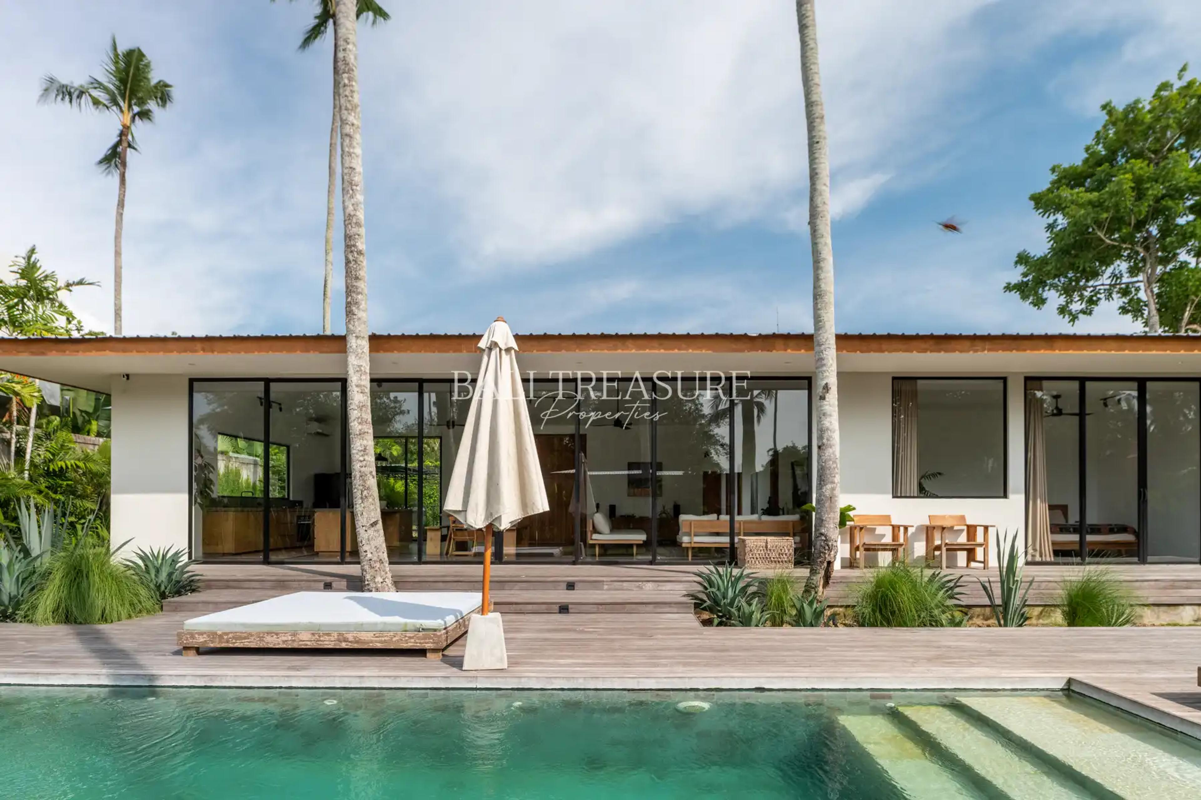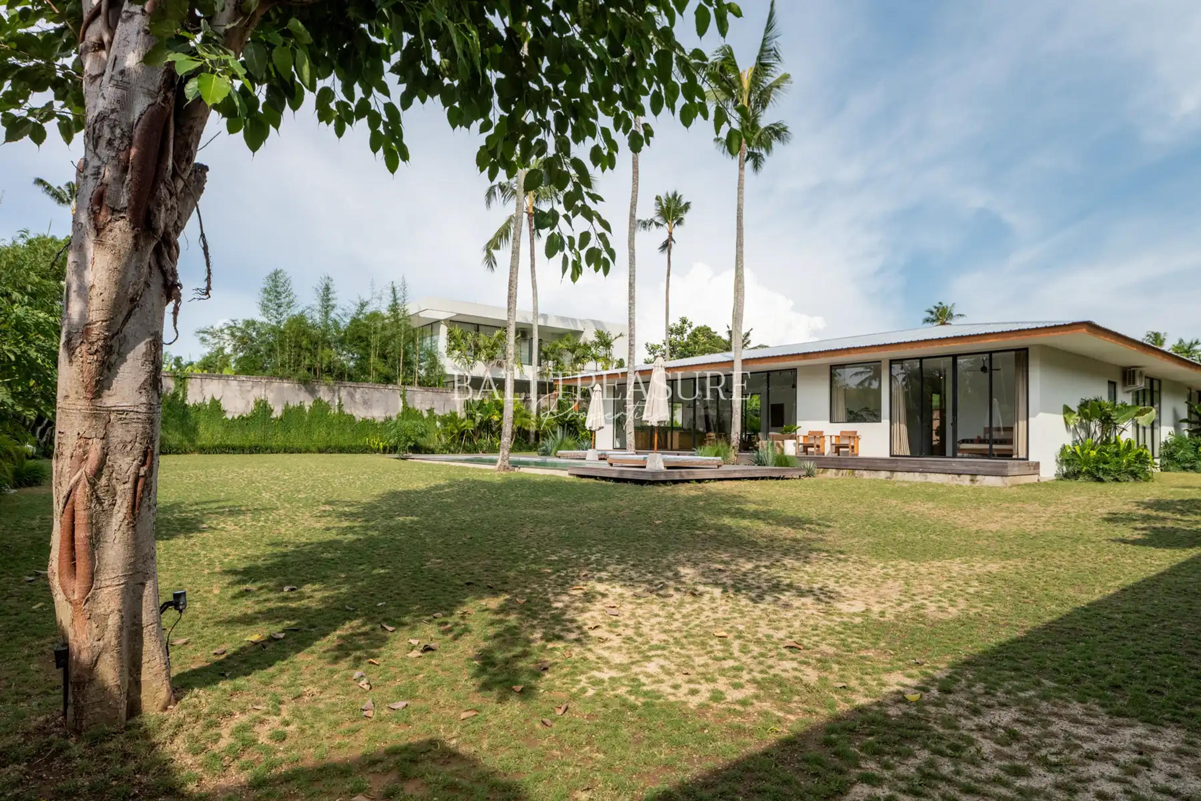 Each villa is designed with clean lines, space & a large garden area, two units west facing (sunset) & two units east facing (sunrise). The properties are located on a private road surrounded by rice fields and mountains in the distance.