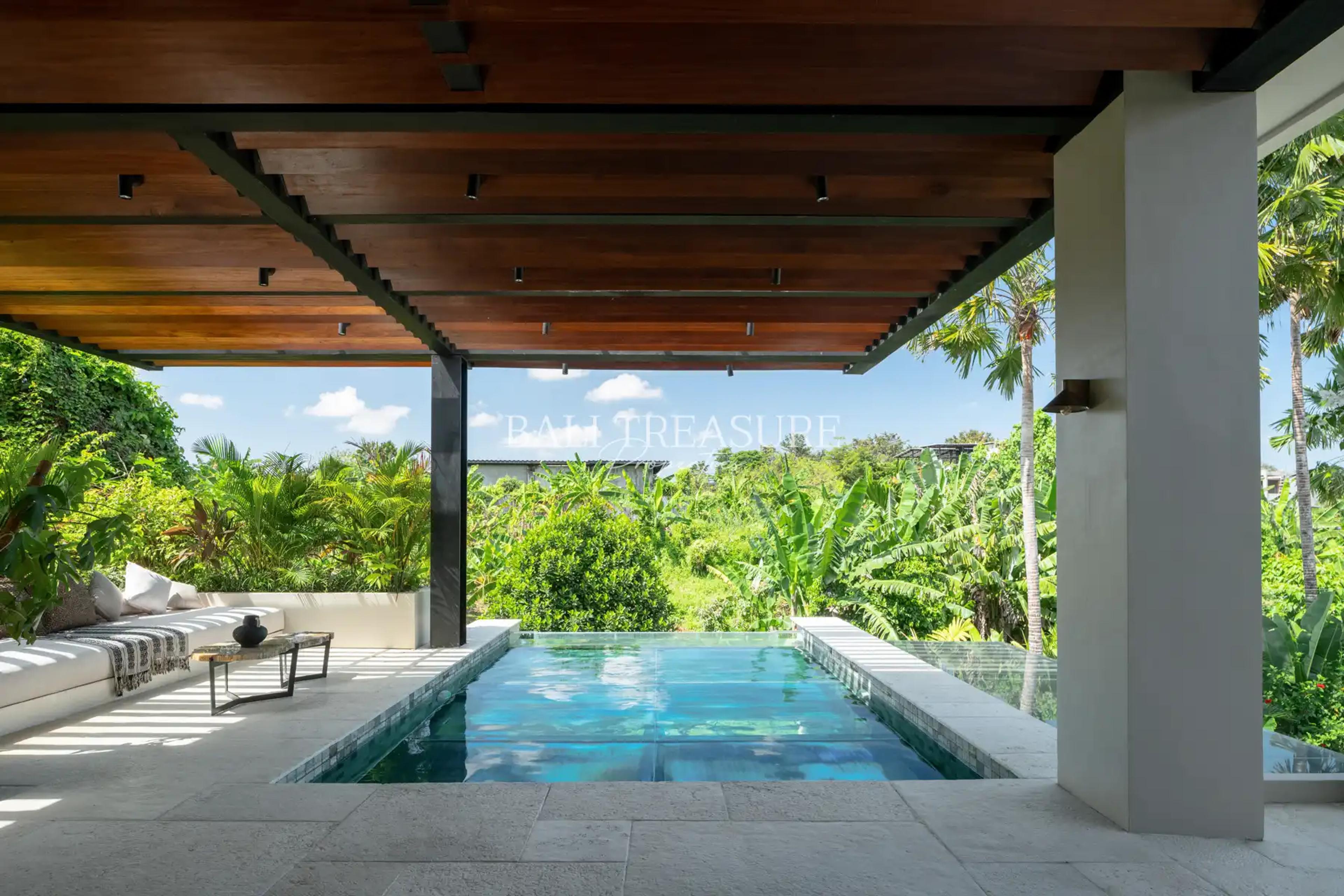 The focal point of this villa is undoubtedly its magnificent 33m pool area. A generously sized pool invites you to cool off on warm Bali days; completed with a sunken lounge and built-in bar area. While a second-story infinity pool offers a unique vantage point of the property and its surrounding landscape. Whether you’re lounging poolside or taking a refreshing dip, you’ll feel like you’re in your private tropical oasis.