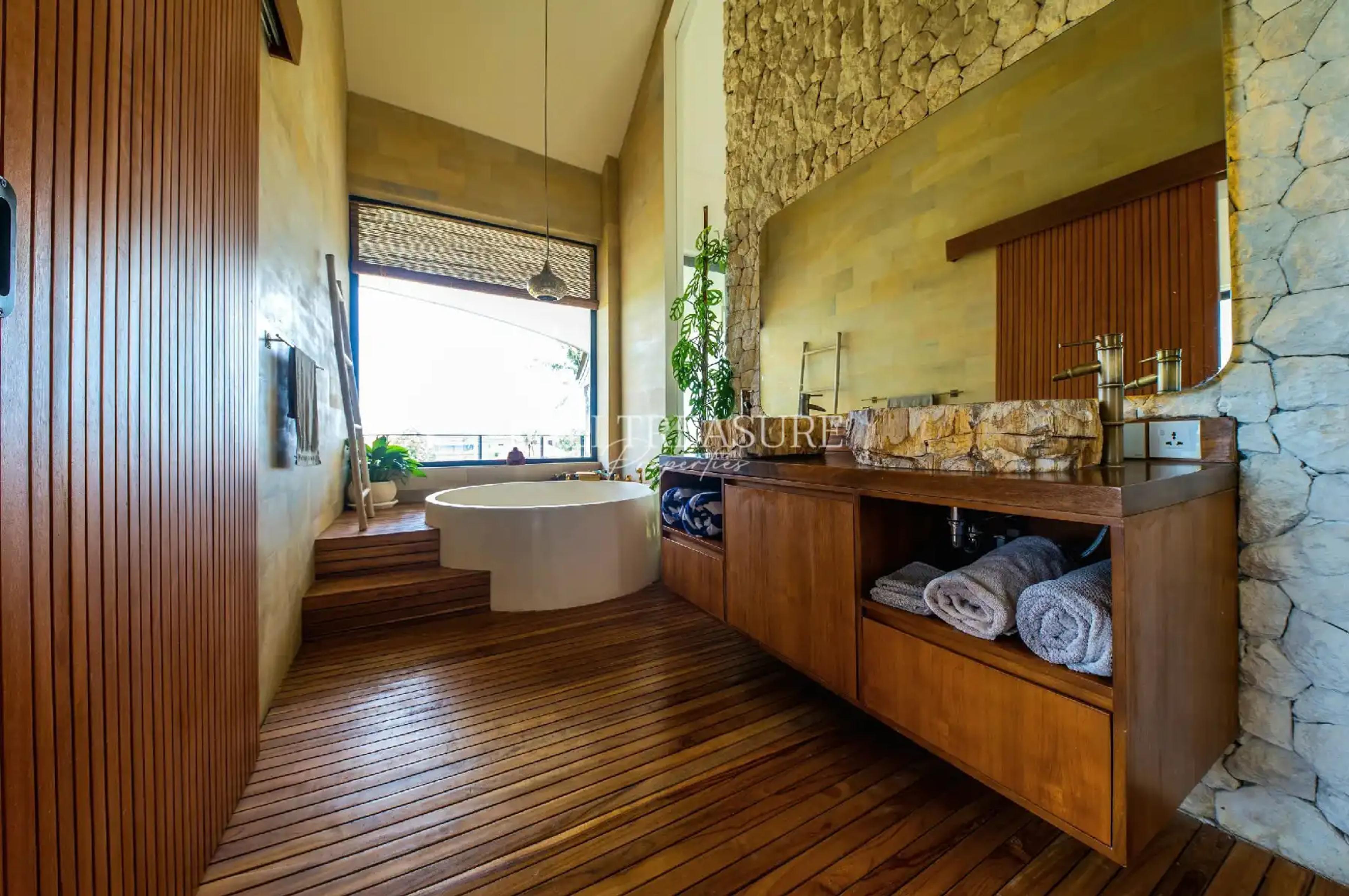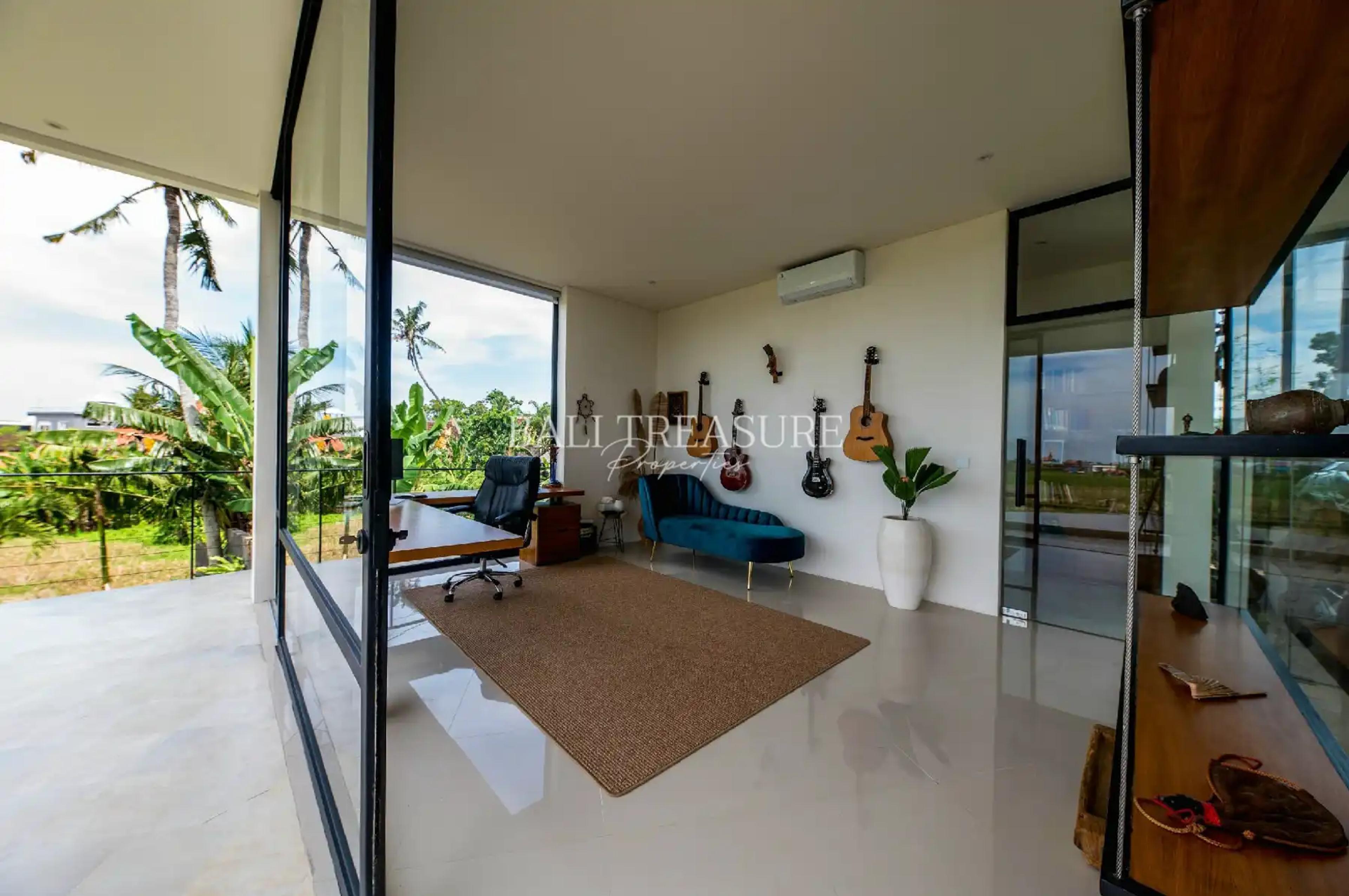 This newly built villa perfectly blends tropical and urban by offering a remarkable 270-degree view of the surrounding rice fields, enriched by a natural swimming pool. The pool offers a sustainable, beautiful, and enjoyable alternative that benefits you and the environment. Imagine the joy of swimming and knowing you’re making a positive impact. It is more than just a pool; it’s an experience that lasts a lifetime. This villa is also designed with dedicated car access, ensuring convenience for residents and their guests.