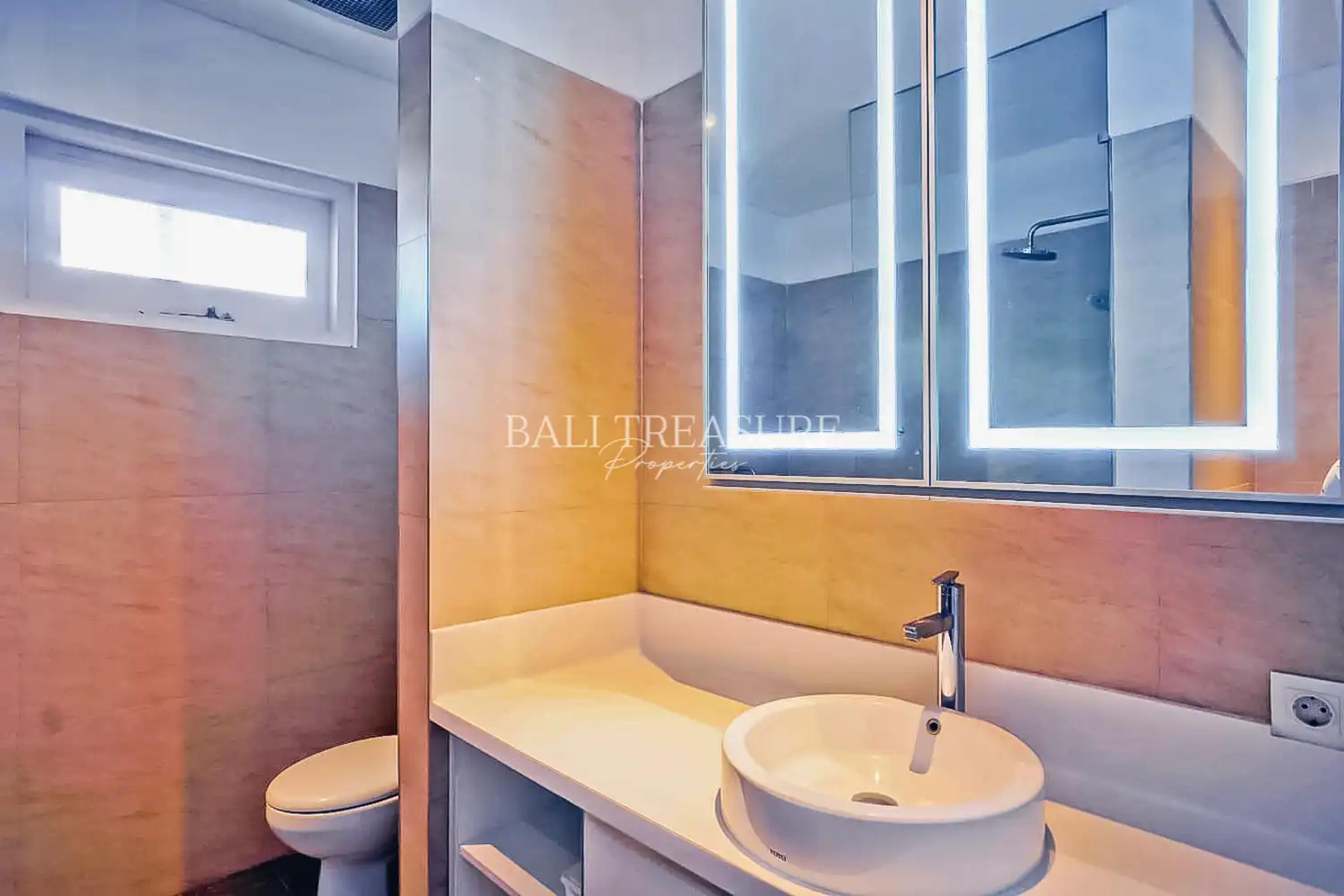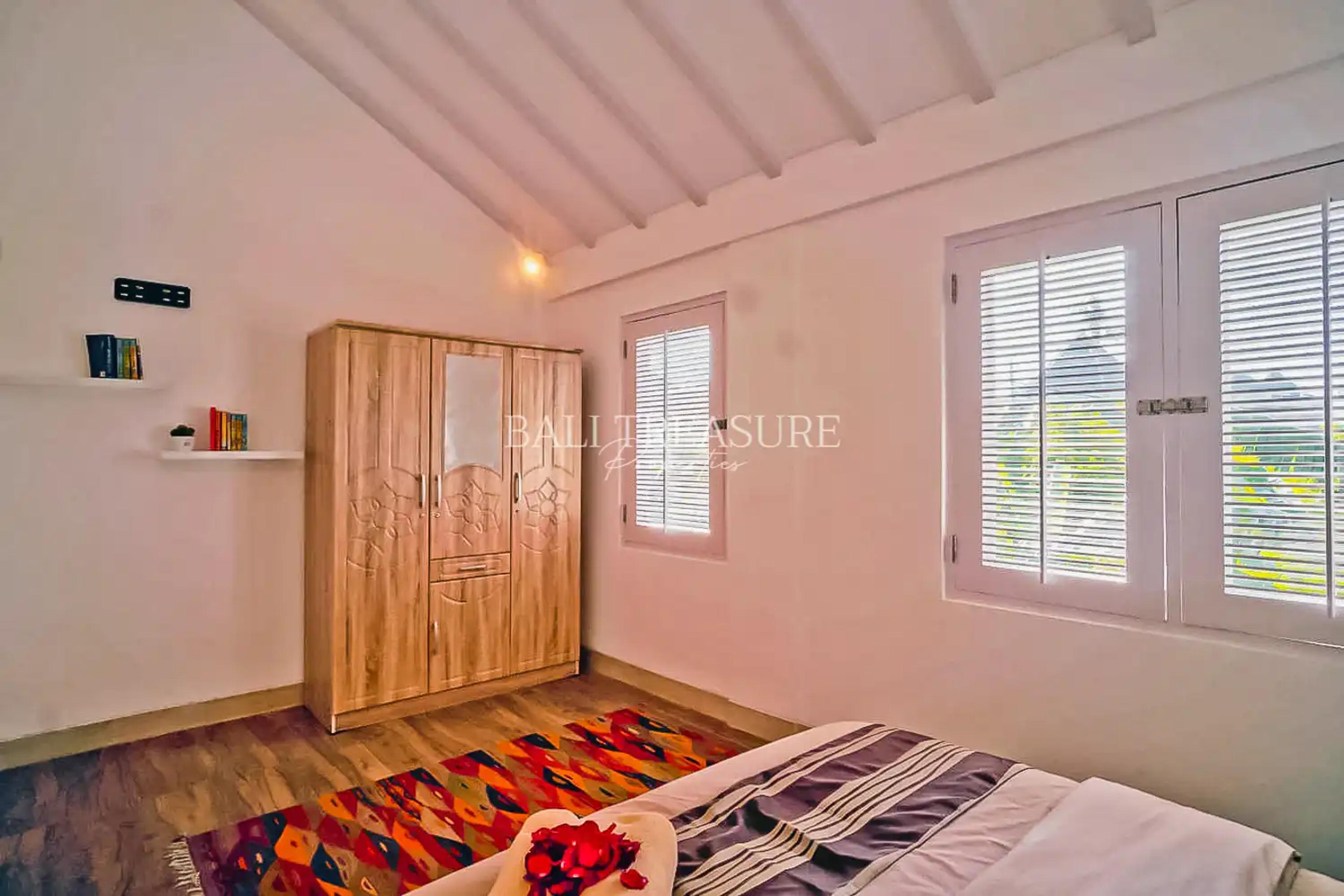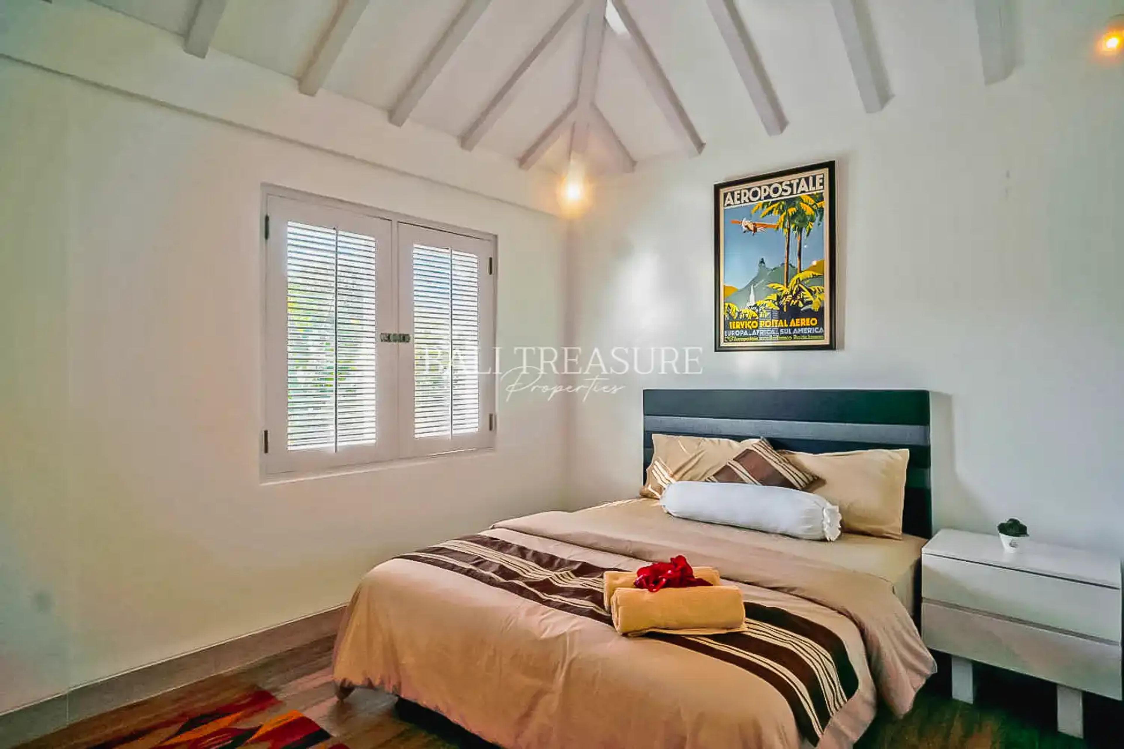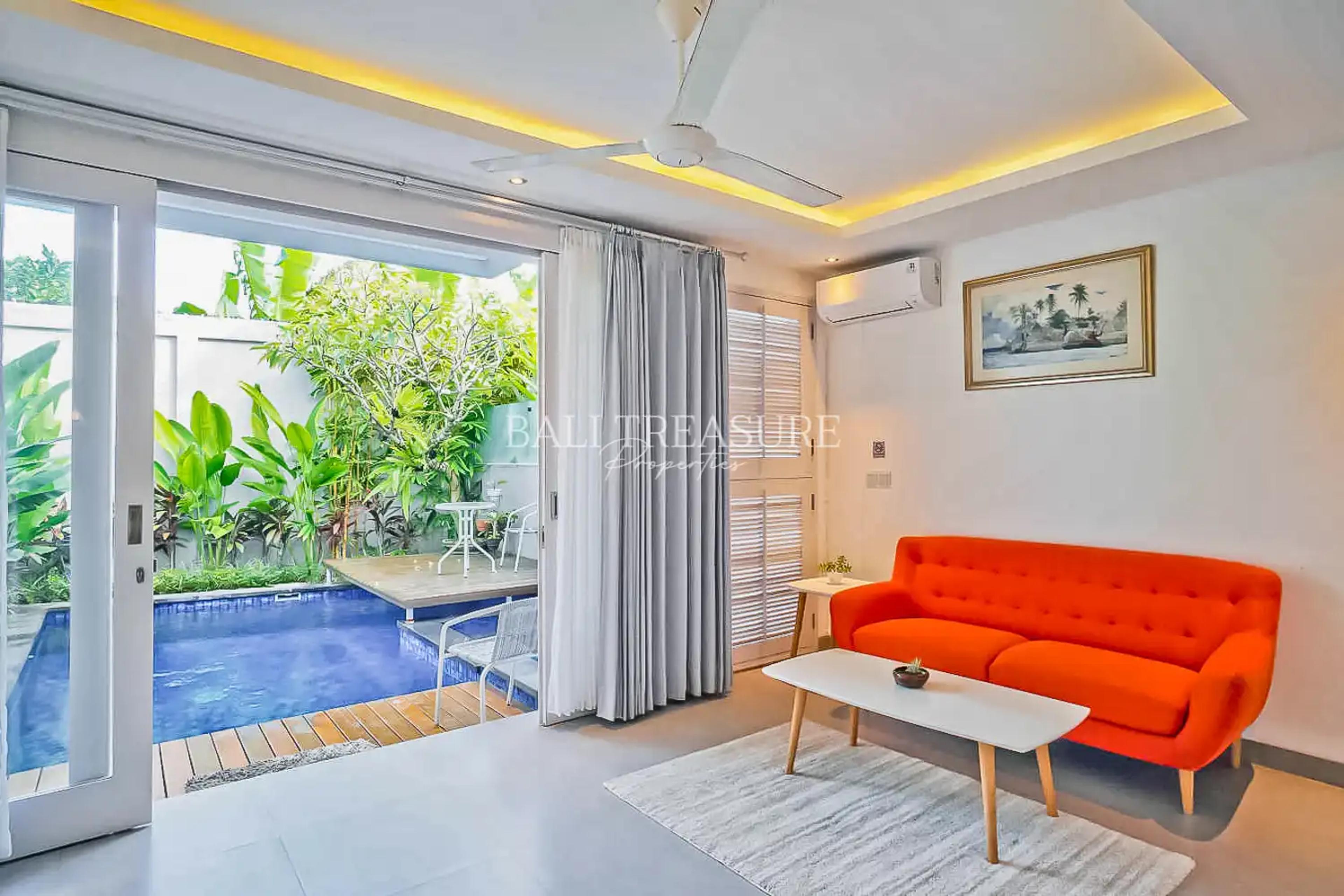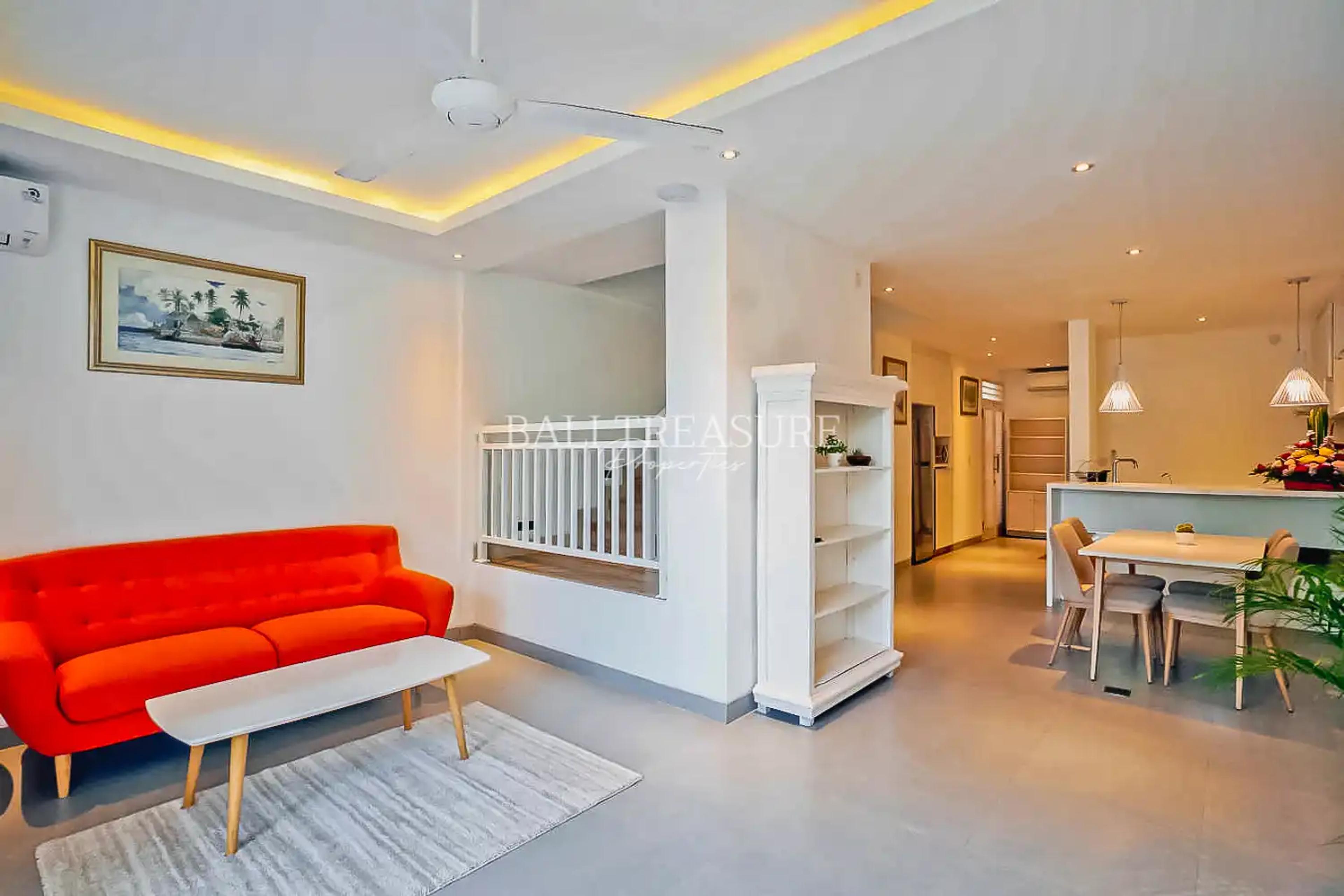 A comfortable two-story villa within walking distance of the beach, it is a peaceful and quiet location off the main road. All bedrooms are under one roof, which makes them suitable for families. The villa interior is held in an attractive minimalist design to create a comfortable living with the conveniences of a modern family home. A roofed car park is available. Easy access to the ByPass I Gusti Ngurah Rai with less than 30 minutes to the Airport or the Gianyar area, renowned for its Balinese art and several tourist attractions.