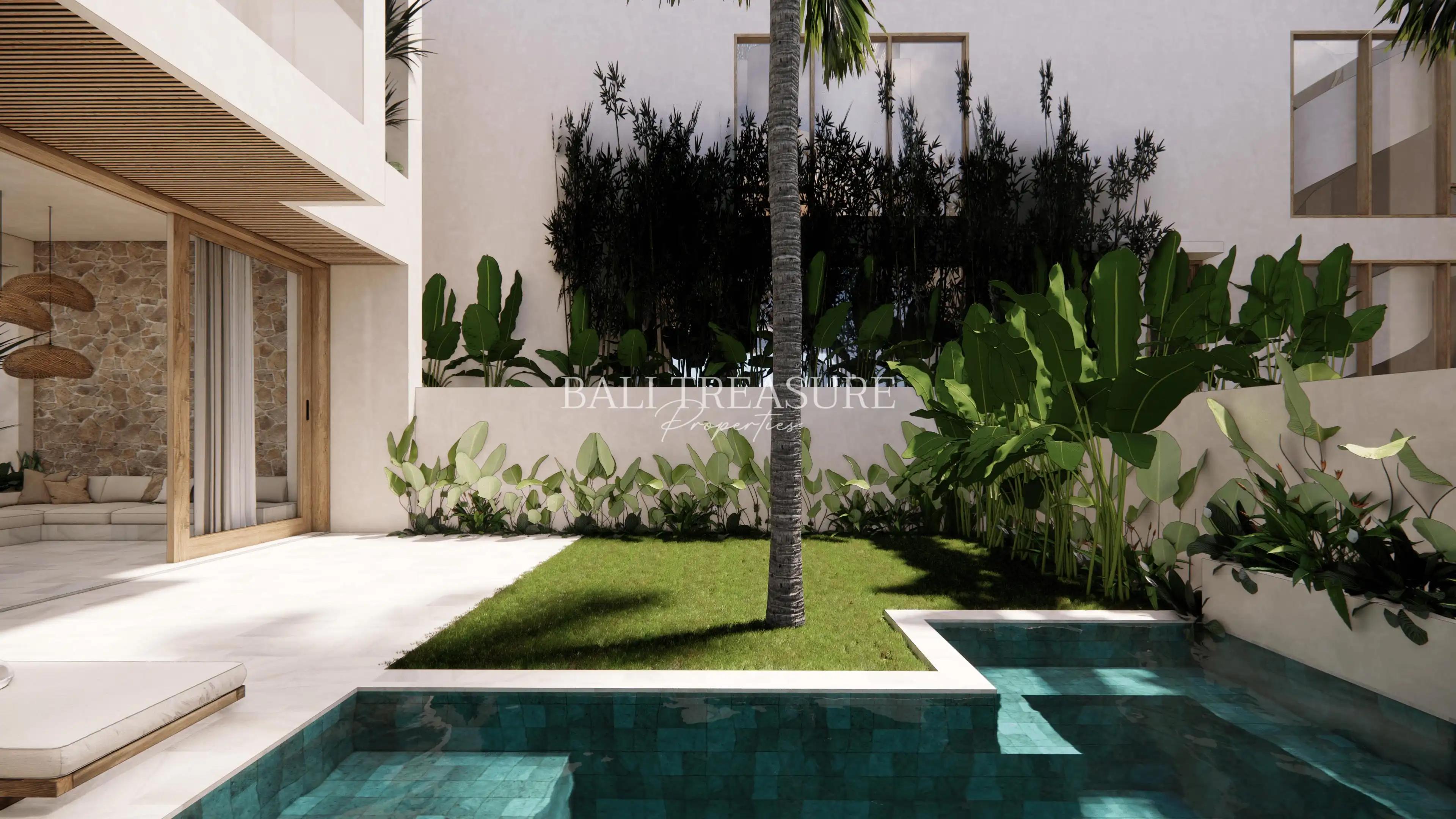 This tropical-style villa will feature two spacious bedrooms, each with its own ensuite bathroom, and executed by a trusted developer. The enclosed living and dining areas are designed to embrace the natural surroundings, creating a bright, airy space for both relaxation and entertainment. A modern, fully equipped kitchen ensures convenience for home cooking. Outside, enjoy a private pool surrounded by lush tropical gardens, and a rooftop terrace provides the perfect space to unwind and enjoy stunning sunset views.