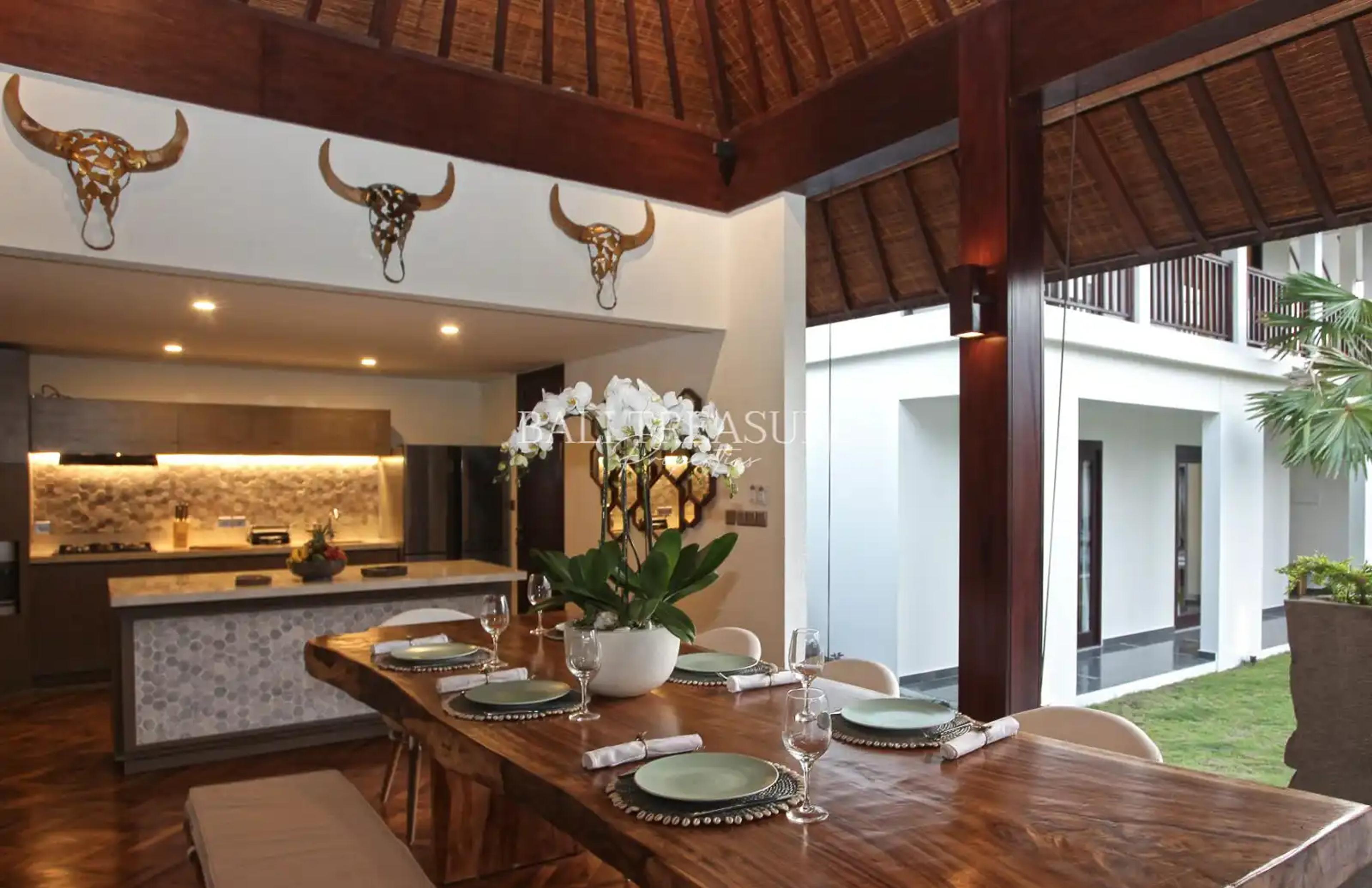This tropical modern design villa is located with only a 5-minute drive from Berawa beach, and it is conveniently surrounded by various amenities such as restaurants, cafes, and shops, making it the perfect location.