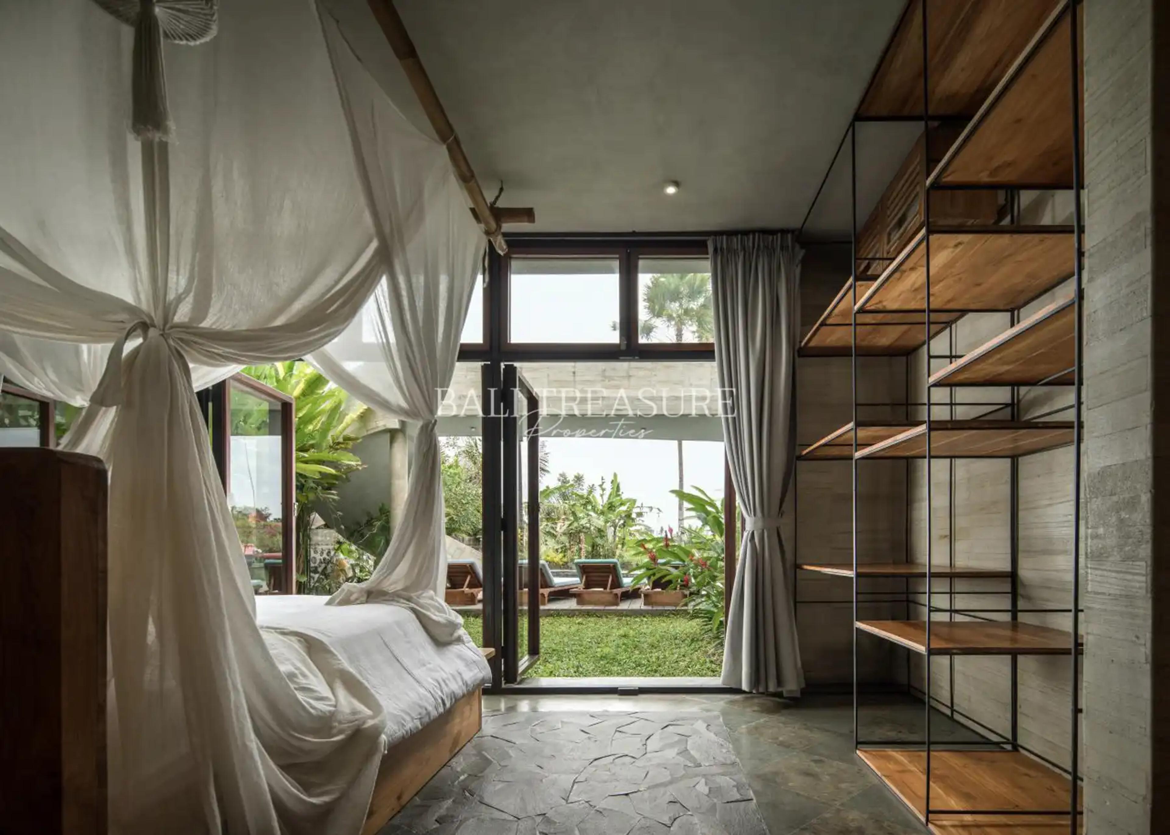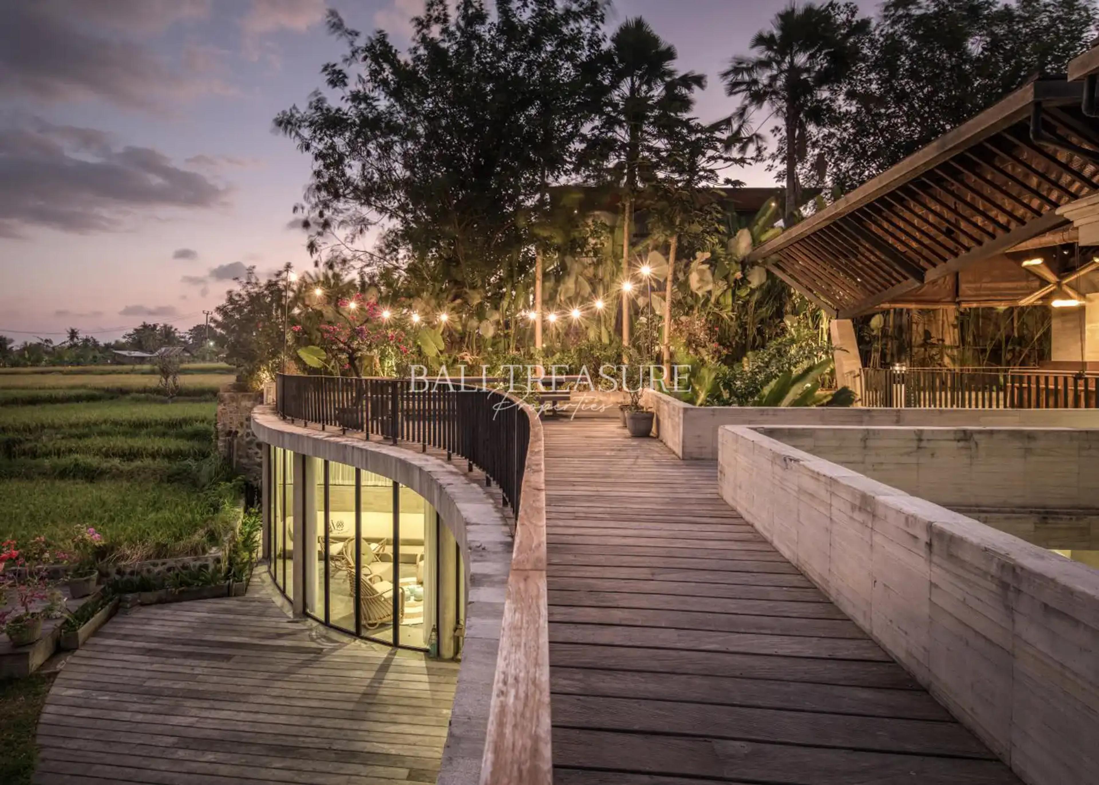 Situated in the Village of Mas, south of Ubud, this 4–5-bedroom villa is a part of an exclusive community known for its rich blend of internationally acclaimed visionaries, artists, musicians, surfers, and socially conscious entrepreneurs. Nestled within a gated area with access to serene public gardens, the villa offers the perfect environment for those who seek both privacy and a vibrant creative lifestyle.