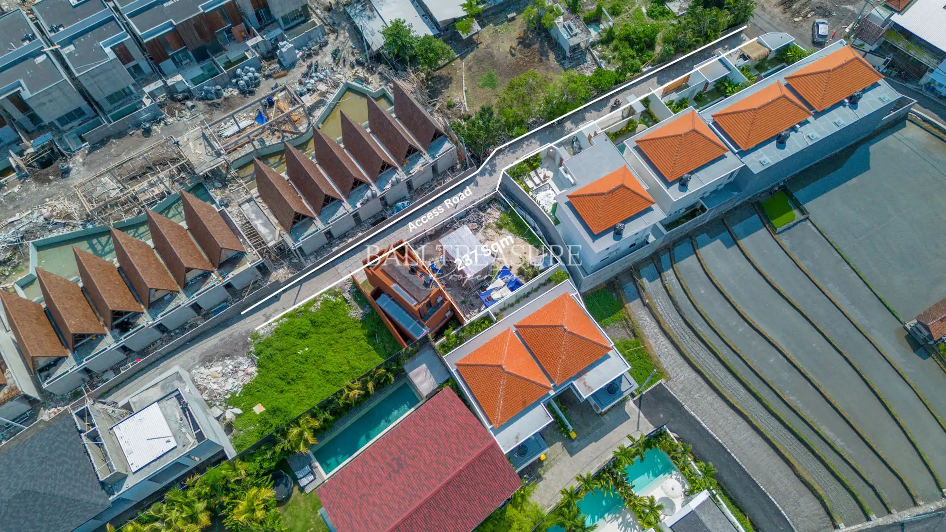 A prime land opportunity in Pererenan, just 7 minutes from the beach and strategically located near top international schools. This 237 sqm square-shaped plot is the perfect foundation for a luxury private villa, allowing for a well-balanced and efficient architectural layout. Set in a peaceful area with convenient 4-meter paved road access, this plot offers a blend of privacy and connectivity.