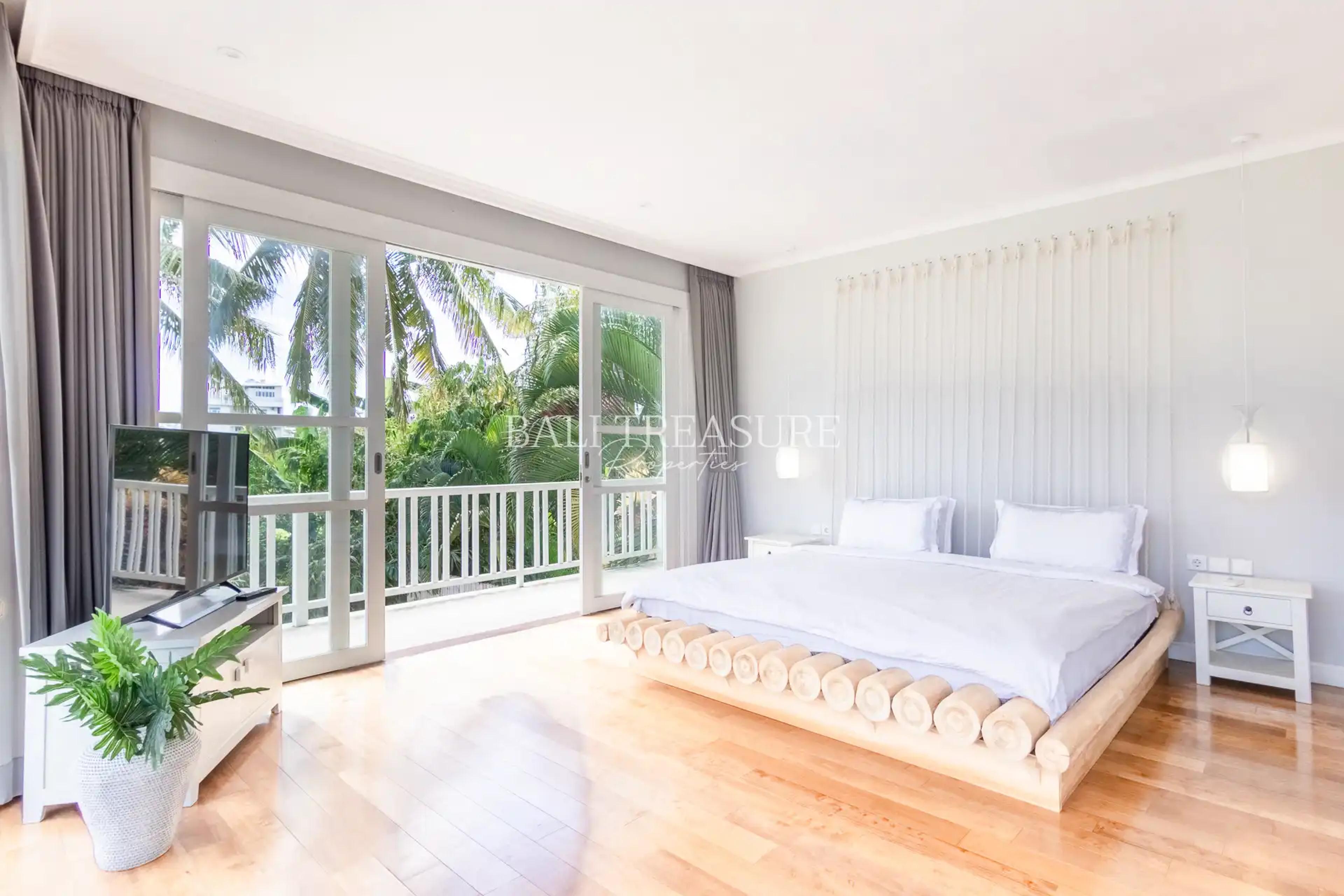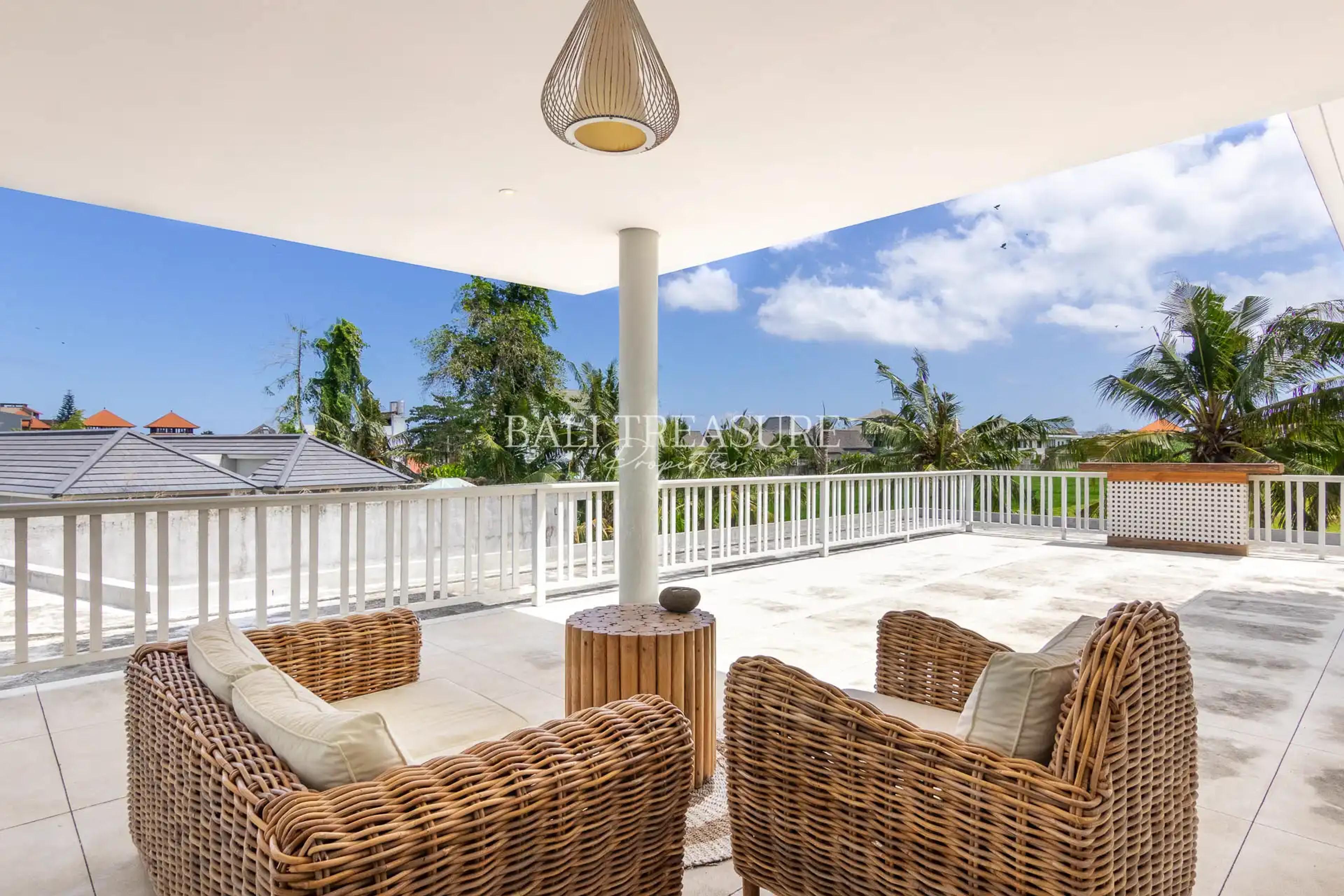 Built in 2018, this villa spans 400 sqm of luxurious living space on a 750 sqm plot. Its modern, Western-inspired architecture is complemented by premium furnishings and thoughtful details. With four spacious bedrooms, three bathrooms, and a rooftop terrace overlooking tropical rice paddies, the villa offers ample room for relaxation and entertainment. The open-plan living and kitchen area flows seamlessly into a landscaped garden with a 15×4.5-meter lap pool. Additional features include a gated parking area, staff quarters, and high-end appliances.