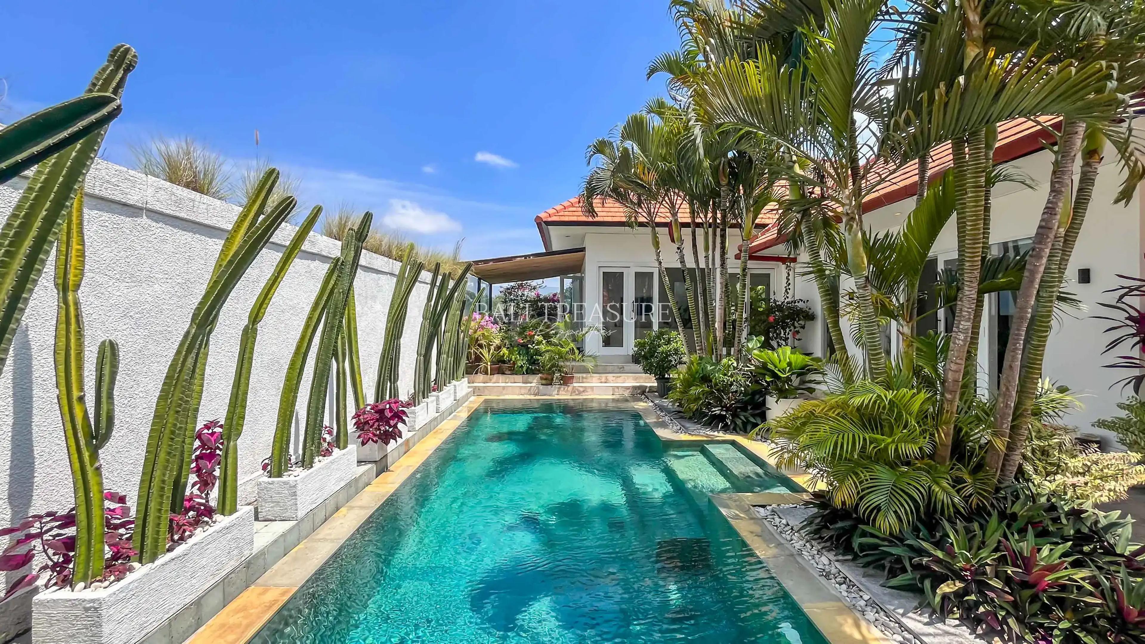This villa, built in 2018, spans 230 sqm on a 450 sqm plot. The interior is spacious, featuring three bedrooms and three bathrooms, complemented by a fully equipped kitchen. Outdoors, the 3×7-meter pool adds an inviting touch to the property. With a leasehold until April 2045, this villa offers both comfort and peace of mind for years to come.